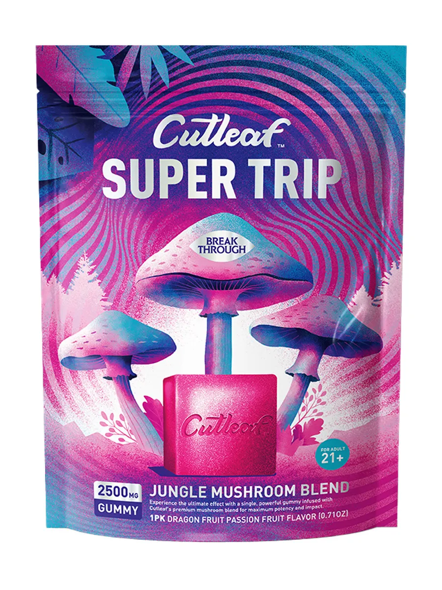 Dive into exotic flavors with Dragon Fruit Passion Fruit Cutleaf Super Trip Jungle Mushroom Blend Gummies 2500MG. Designed for maximum potency and taste, this gummy delivers an unforgettable experience.